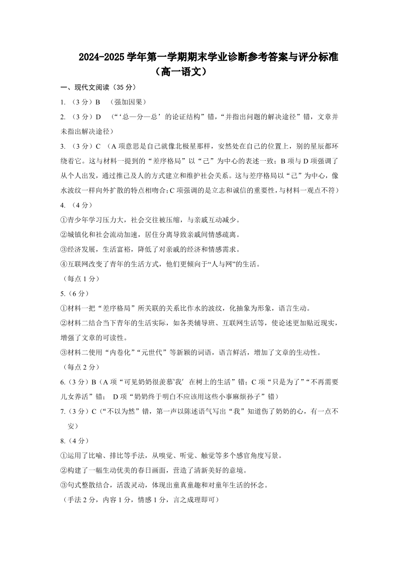 山西省太原市2024-2025学年高一上学期期末学业诊断 语文答案.pdf