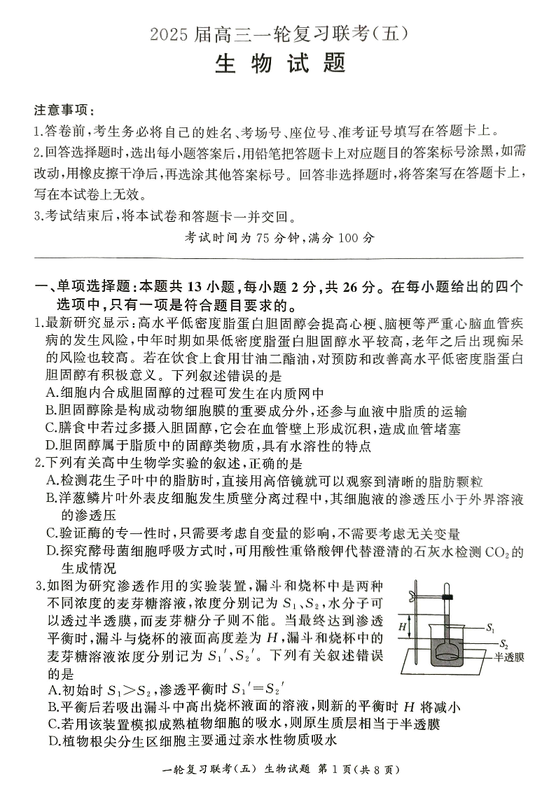 百师联盟2025届高三一轮复习联考(五)生物.pdf