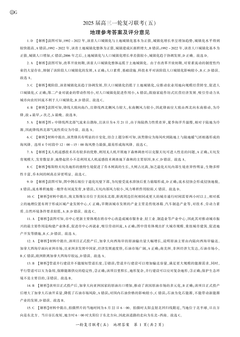 百师联盟2025届高三一轮复习联考(五)地理答案.pdf