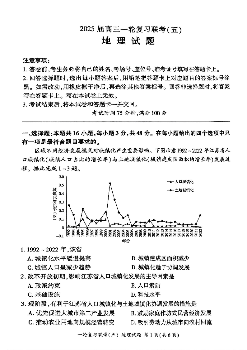 百师联盟2025届高三一轮复习联考(五)地理.pdf