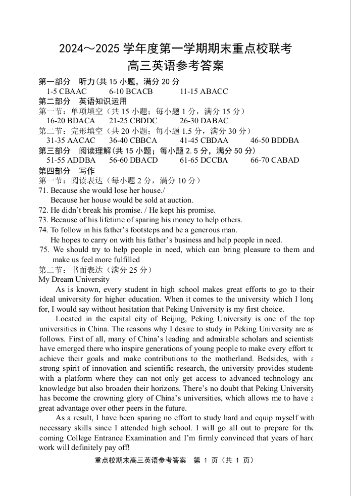 天津市五区县重点校2024-2025学年高三上学期期末考试 英语答案.docx