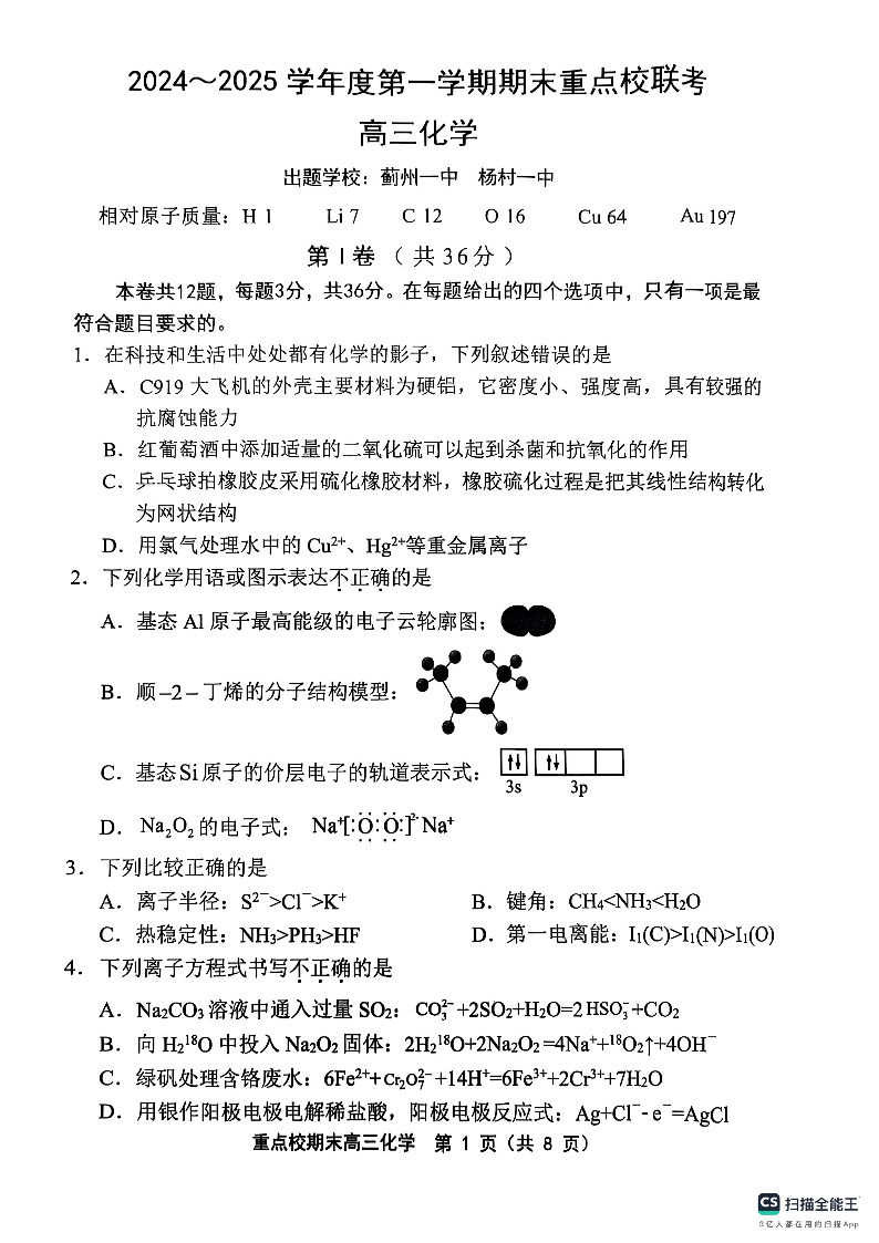 天津市五区县重点校2024-2025学年高三上学期期末考试 化学.pdf