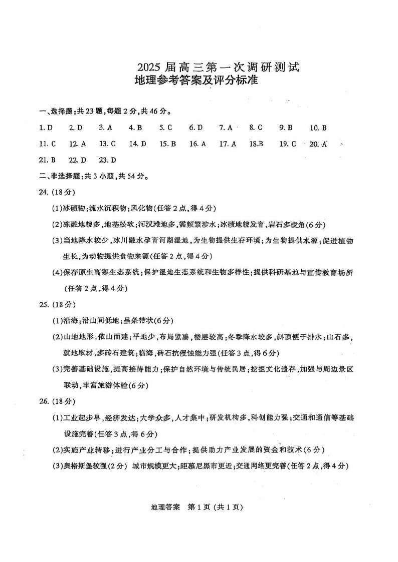 江苏省南通市、泰州市、镇江市、盐城市2025届高三第一次调研测试 地理答案.pdf