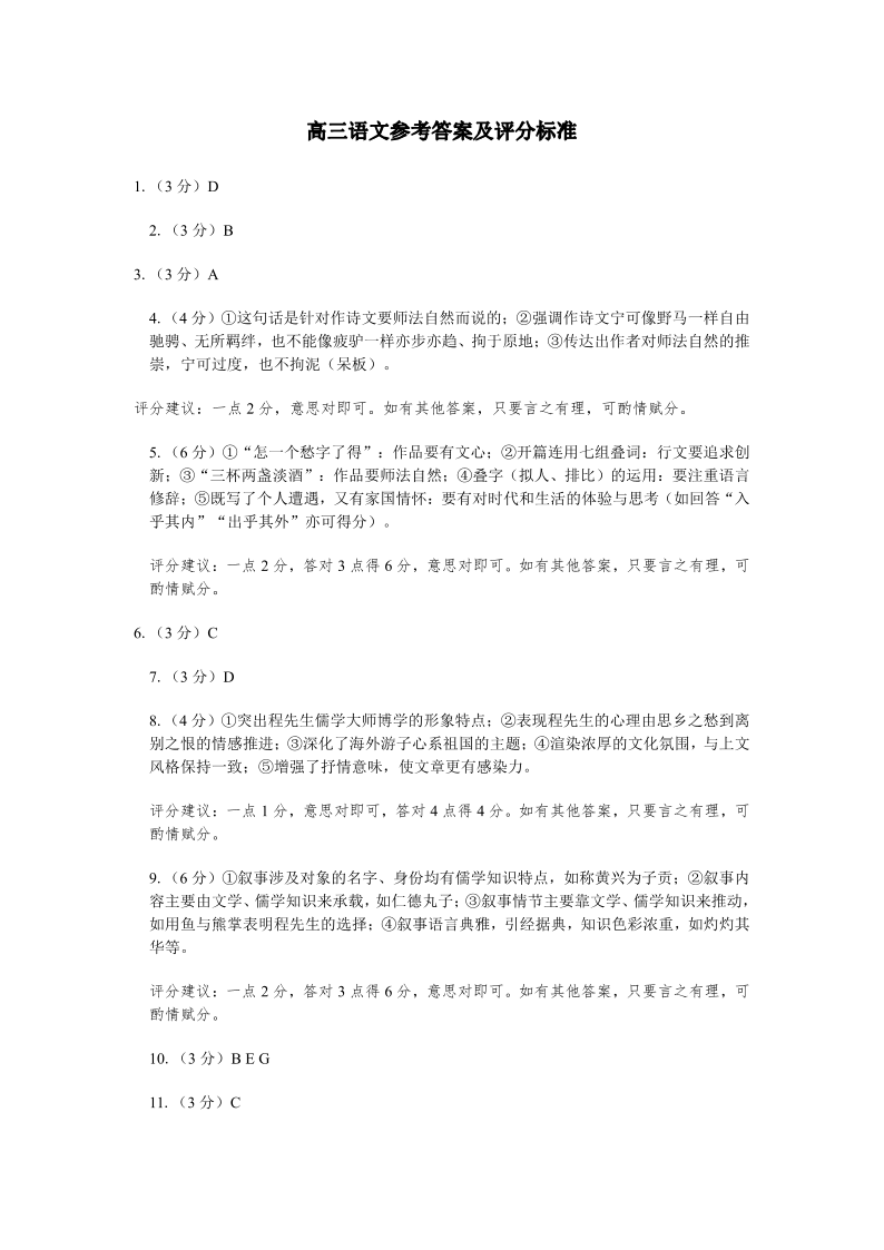 苏北四市2024~2025学年度第一学期高三年级第一次质检 语文答案.pdf