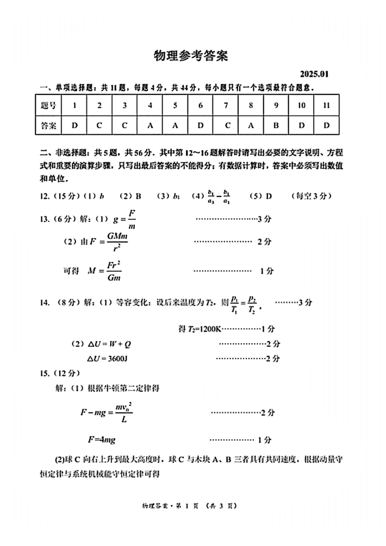 苏北四市2024~2025学年度第一学期高三年级第一次质检 物理答案.pdf