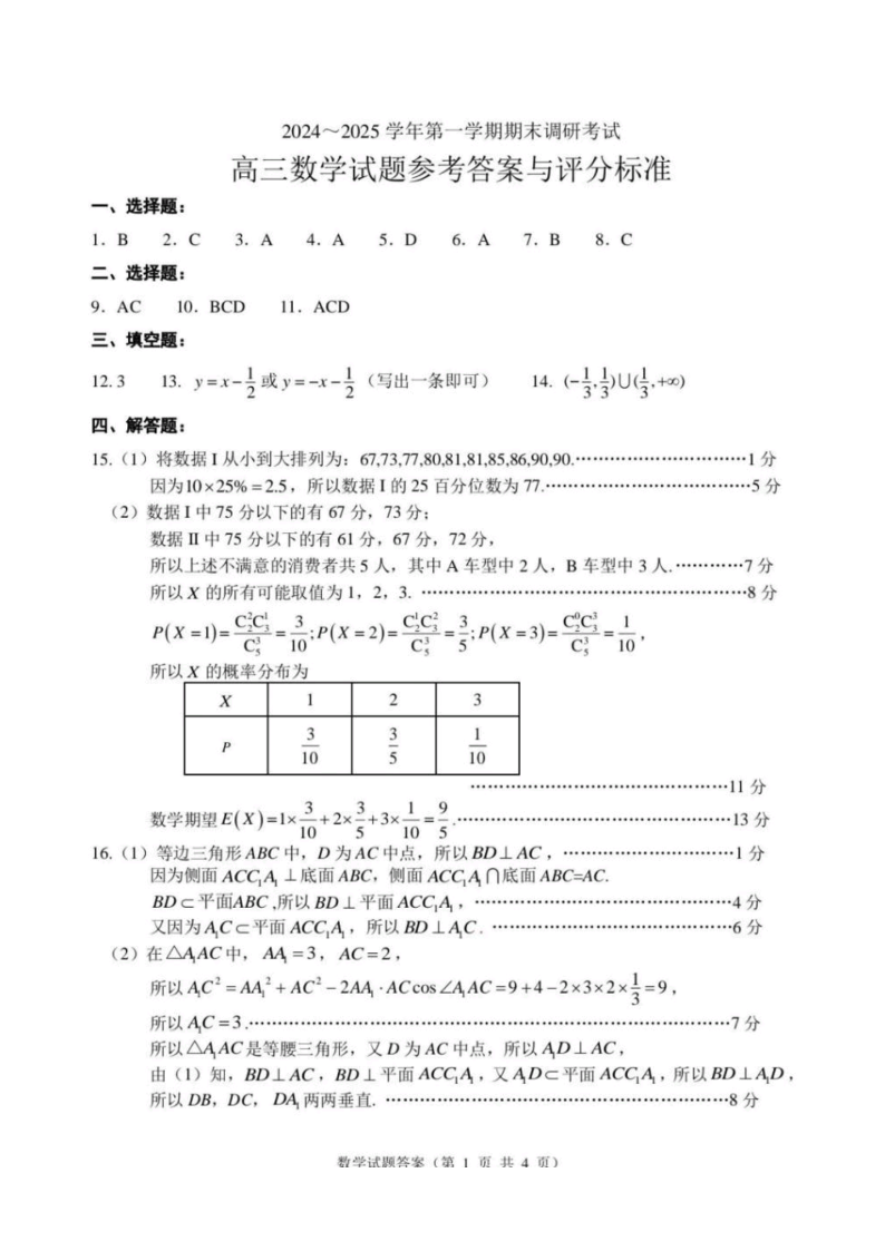 苏北四市2024~2025学年度第一学期高三年级第一次质检 数学答案.pdf