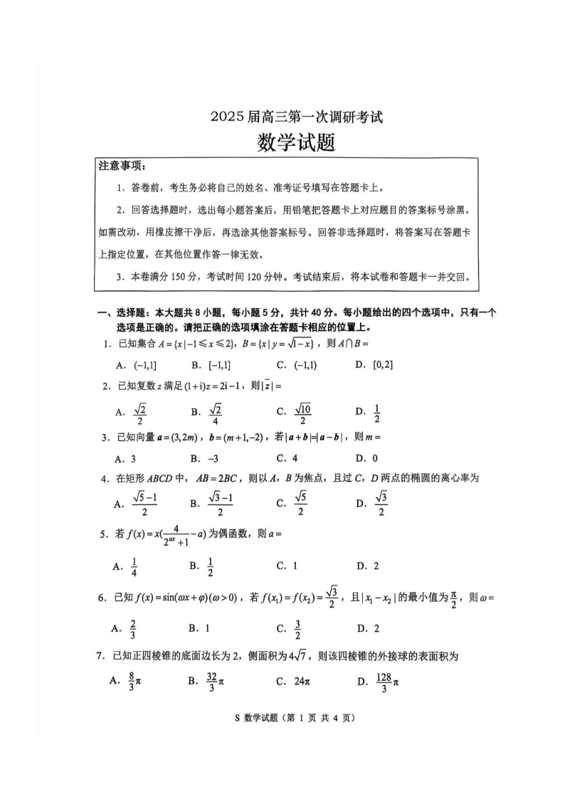苏北四市2024~2025学年度第一学期高三年级第一次质检 数学.pdf