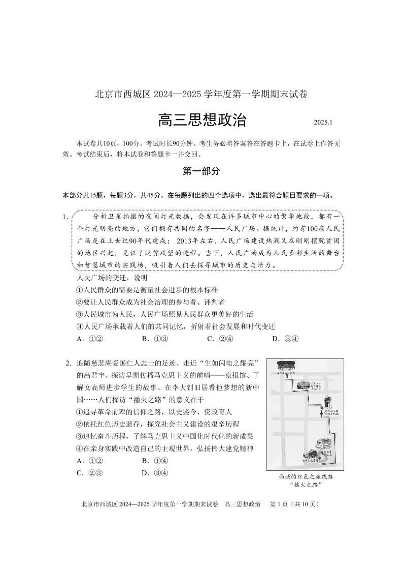 北京市西城区2024-2025学年高三上学期期末考试 政治.pdf