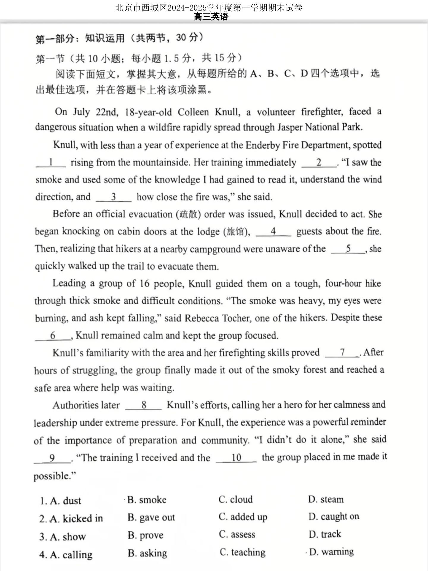 北京市西城区2024-2025学年高三上学期期末考试 英语.pdf