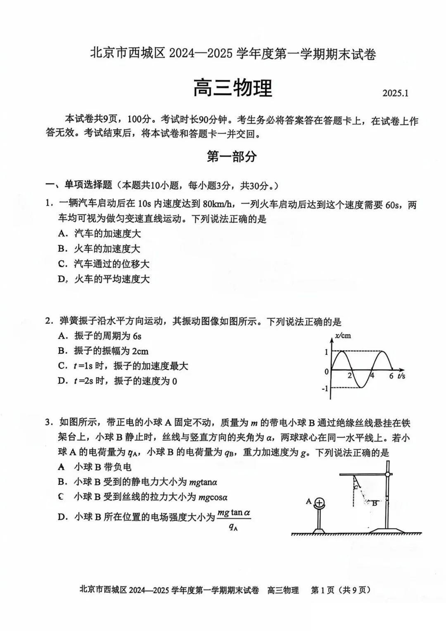 北京市西城区2024-2025学年高三上学期期末考试 物理.pdf