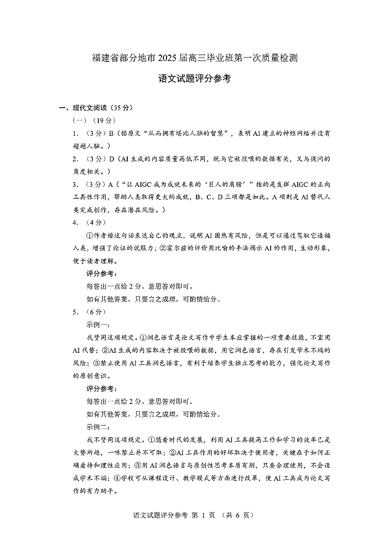 福建省六市2025届高中毕业班第一次质量检测 语文答案.pdf