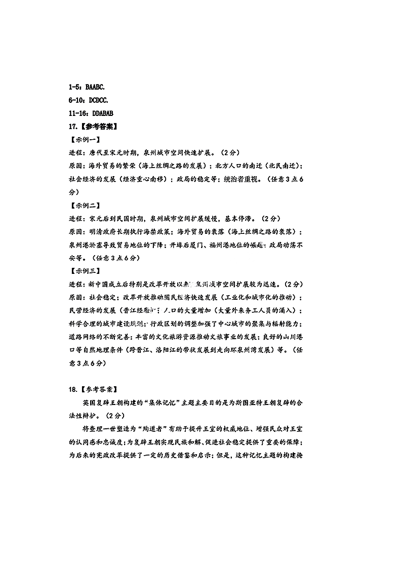 福建省泉州市2025届高中毕业班质量监测(二)历史答案.pdf