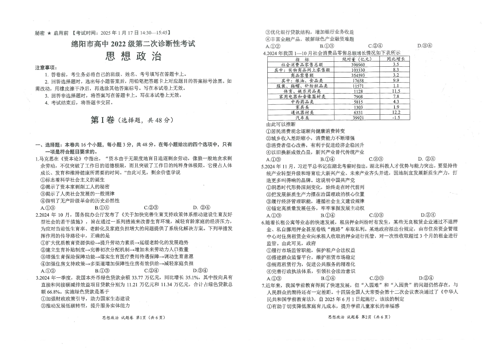 四川省绵阳市2025届高三第二次诊断性考试 政治.pdf