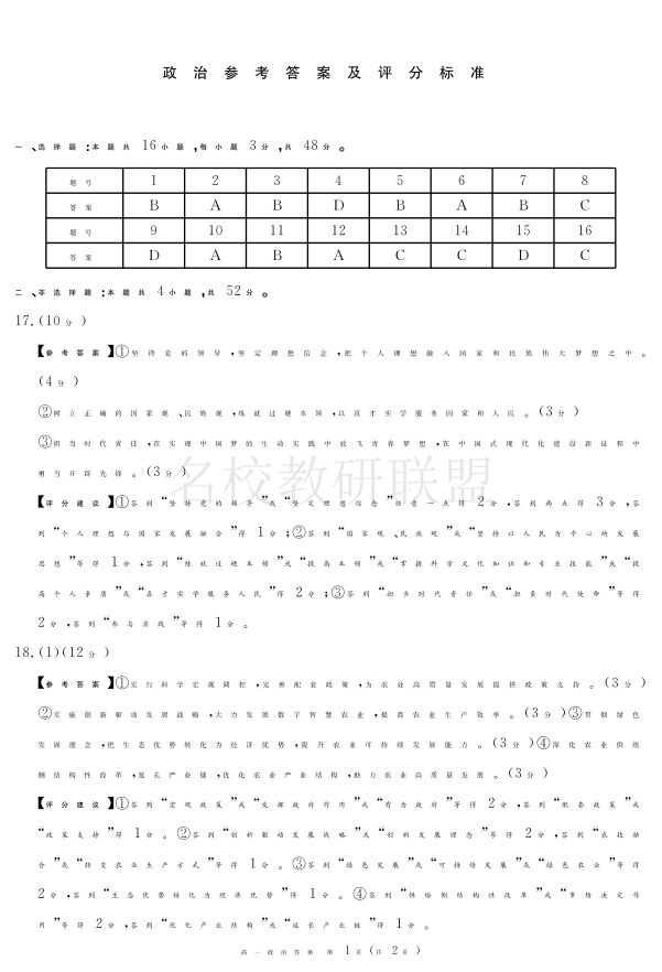 2027届地区期末政治答案.pdf