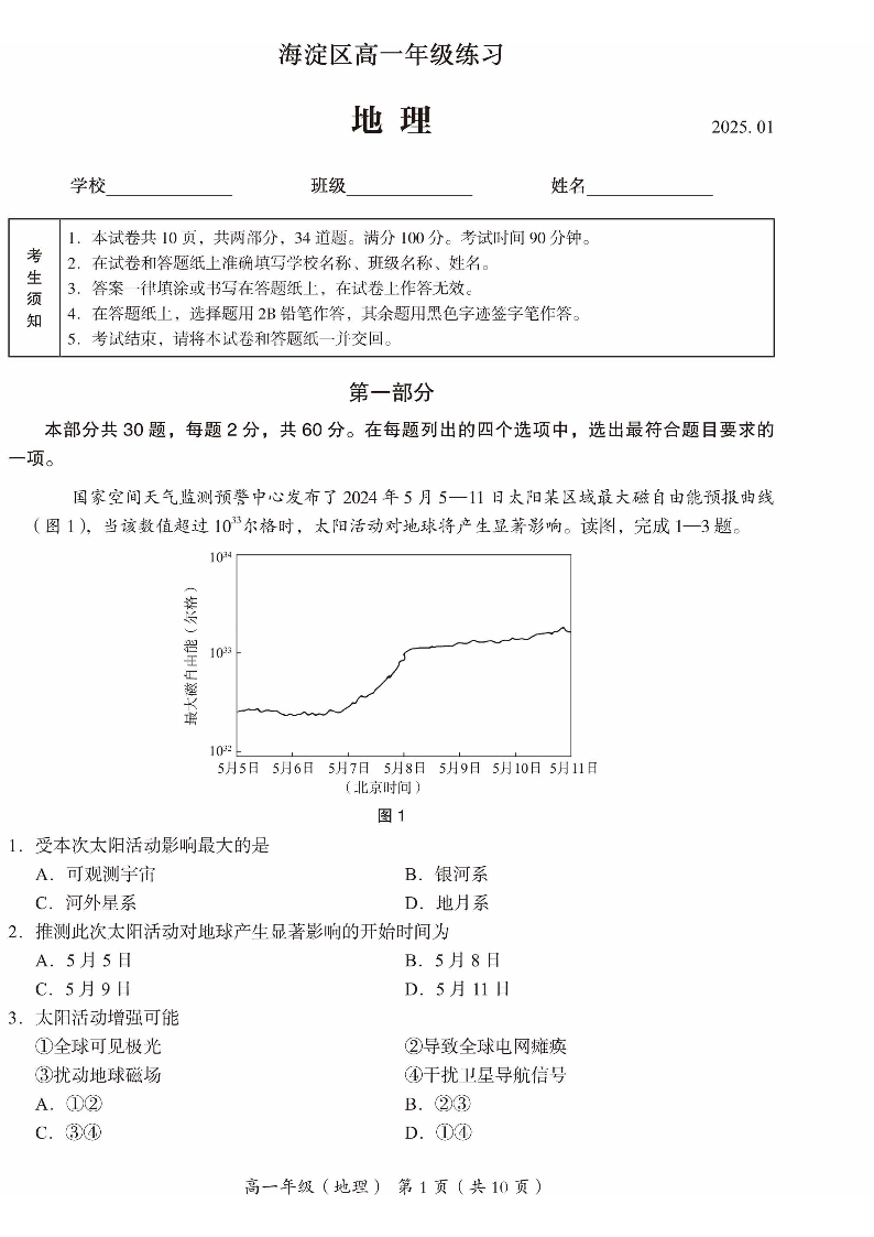 北京市海淀区2024-2025学年高一第一学期期末试卷 地理.pdf