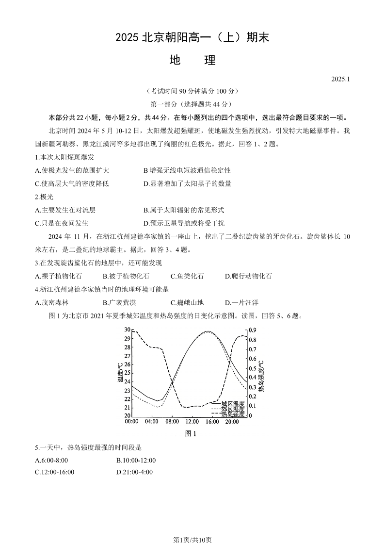 北京市朝阳区2024-2025学年高一年级第一学期期末质量检测 地理.pdf
