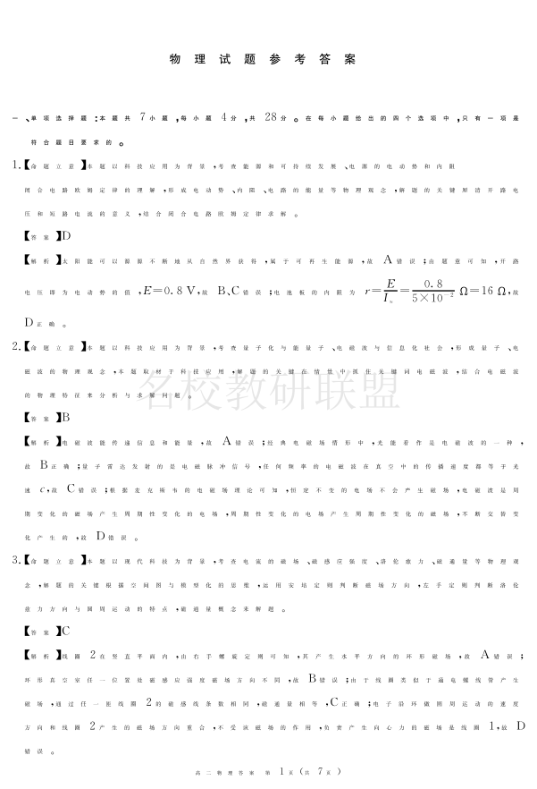 2026届地区期末物理答案.pdf
