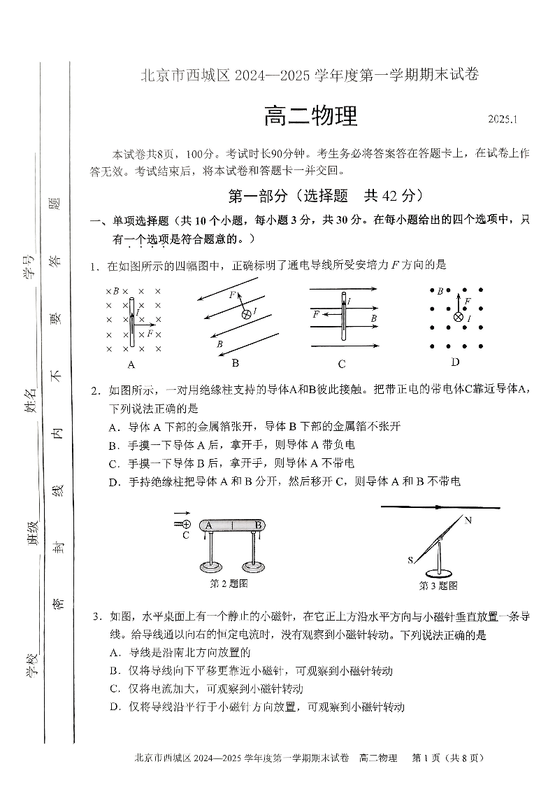 北京市海淀区2024-2025学年高二第一学期期末试卷 物理.pdf