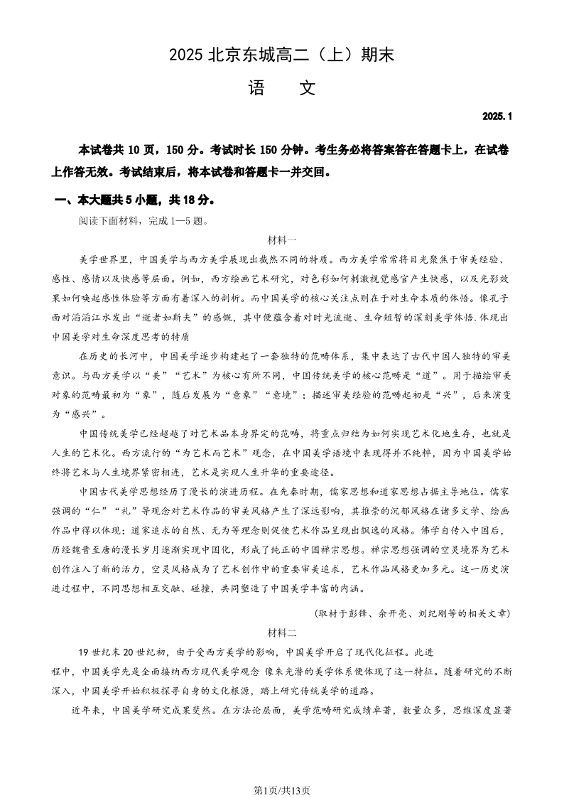 2025年北京市东城区高二(上)期末质量检测 语文.pdf