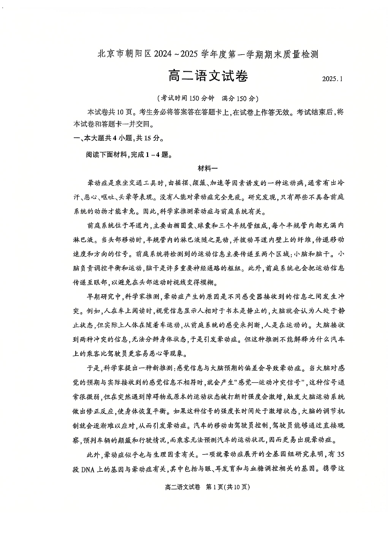 北京市朝阳区2024-2025学年高二年级第一学期期末质量检测 语文.pdf