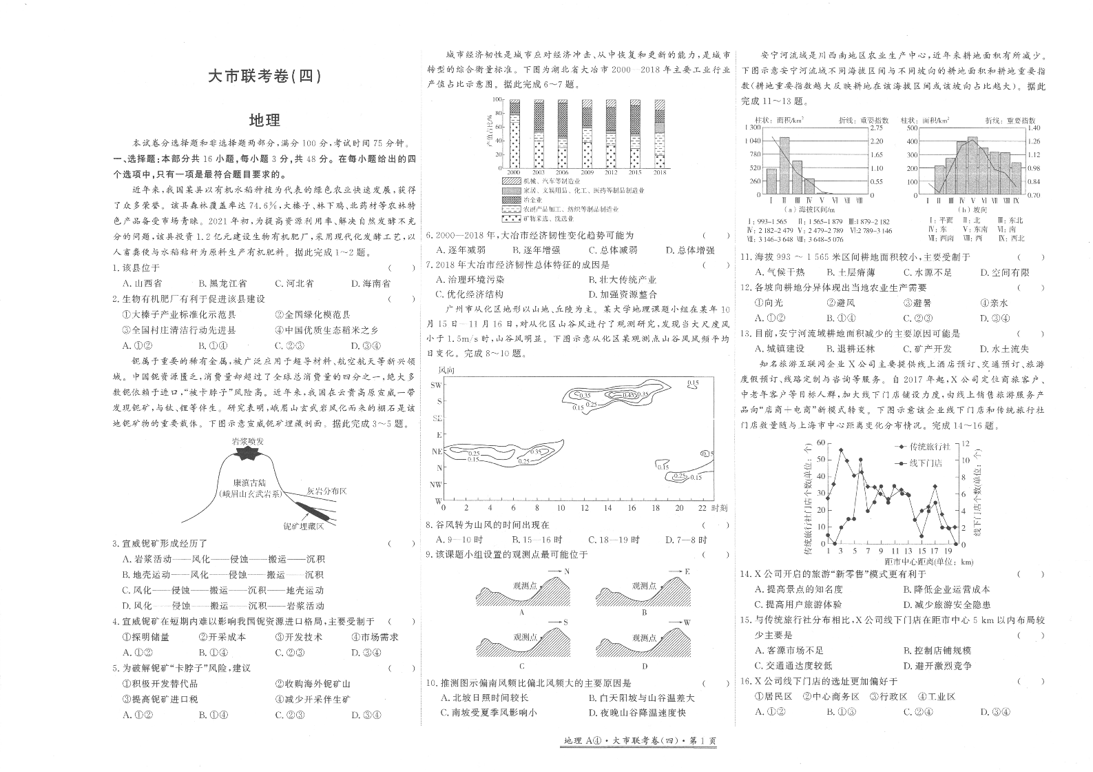 陕西省汉中市2025届高三上学期1月期末联考(大市联考卷四)地理.pdf