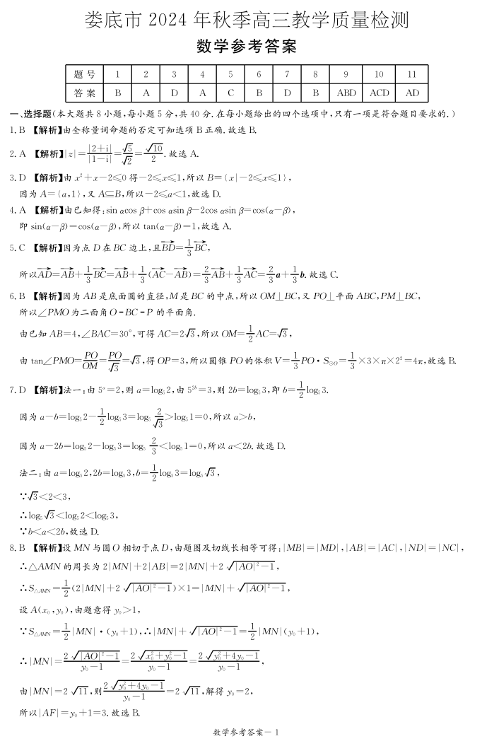 娄底市2024年秋季高三期末质量检测 数学答案.pdf
