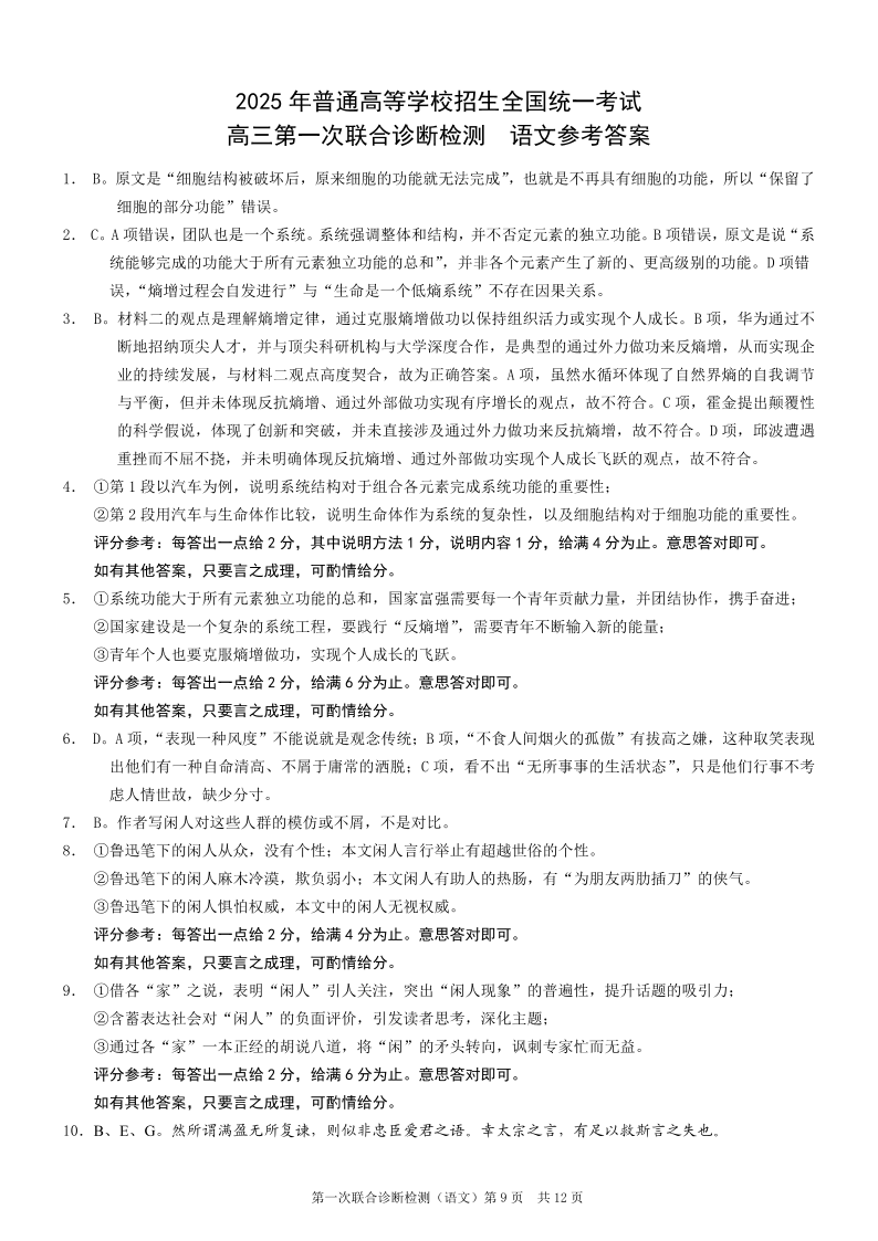 重庆市康德卷2025年高三第一次联合诊断检测(重庆一诊)语文参考答案.pdf