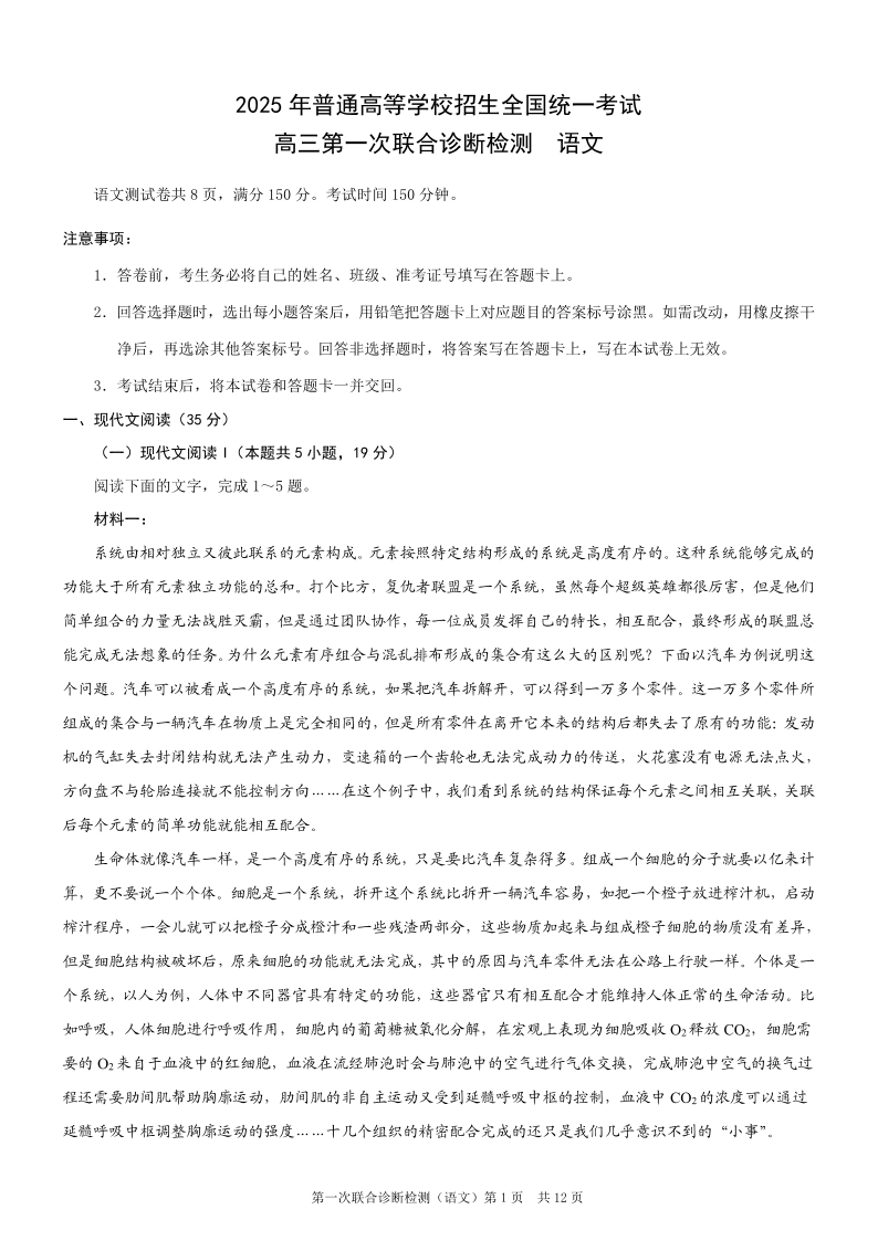 重庆市康德卷2025年高三第一次联合诊断检测(重庆一诊)语文.pdf