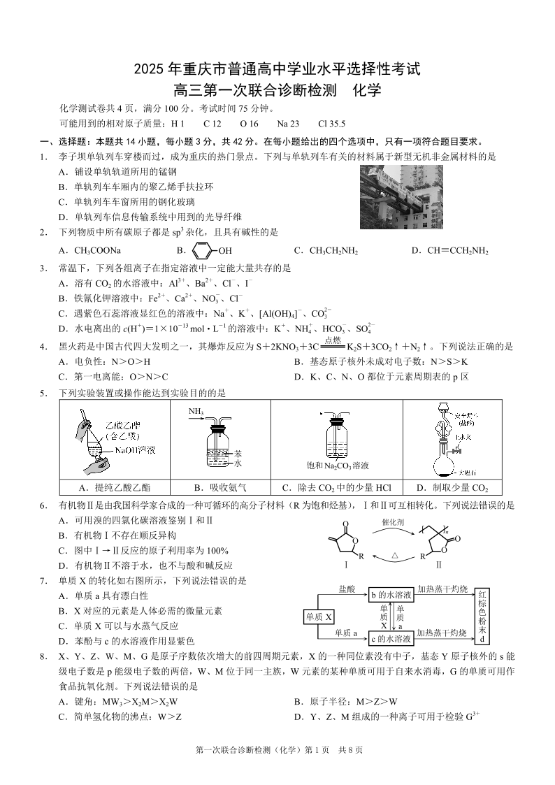 重庆市康德卷2025年高三第一次联合诊断检测(重庆一诊)化学.pdf
