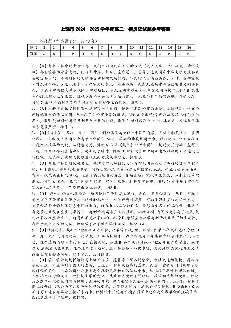 上饶市2025届高三第一次高考模拟考试 历史参考答案.pdf