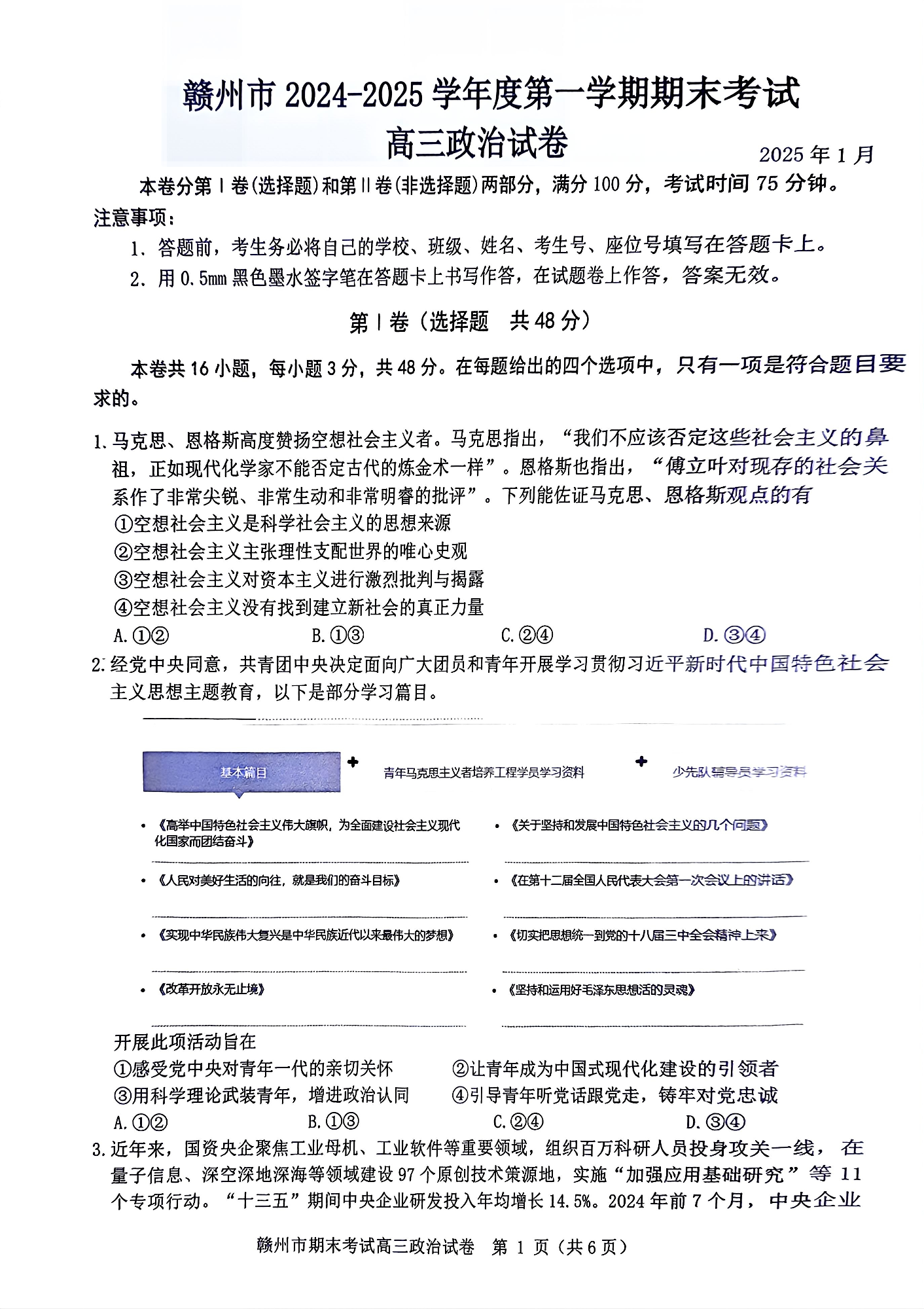 江西省赣州市2025届高三上学期1月期末考试 政治.pdf