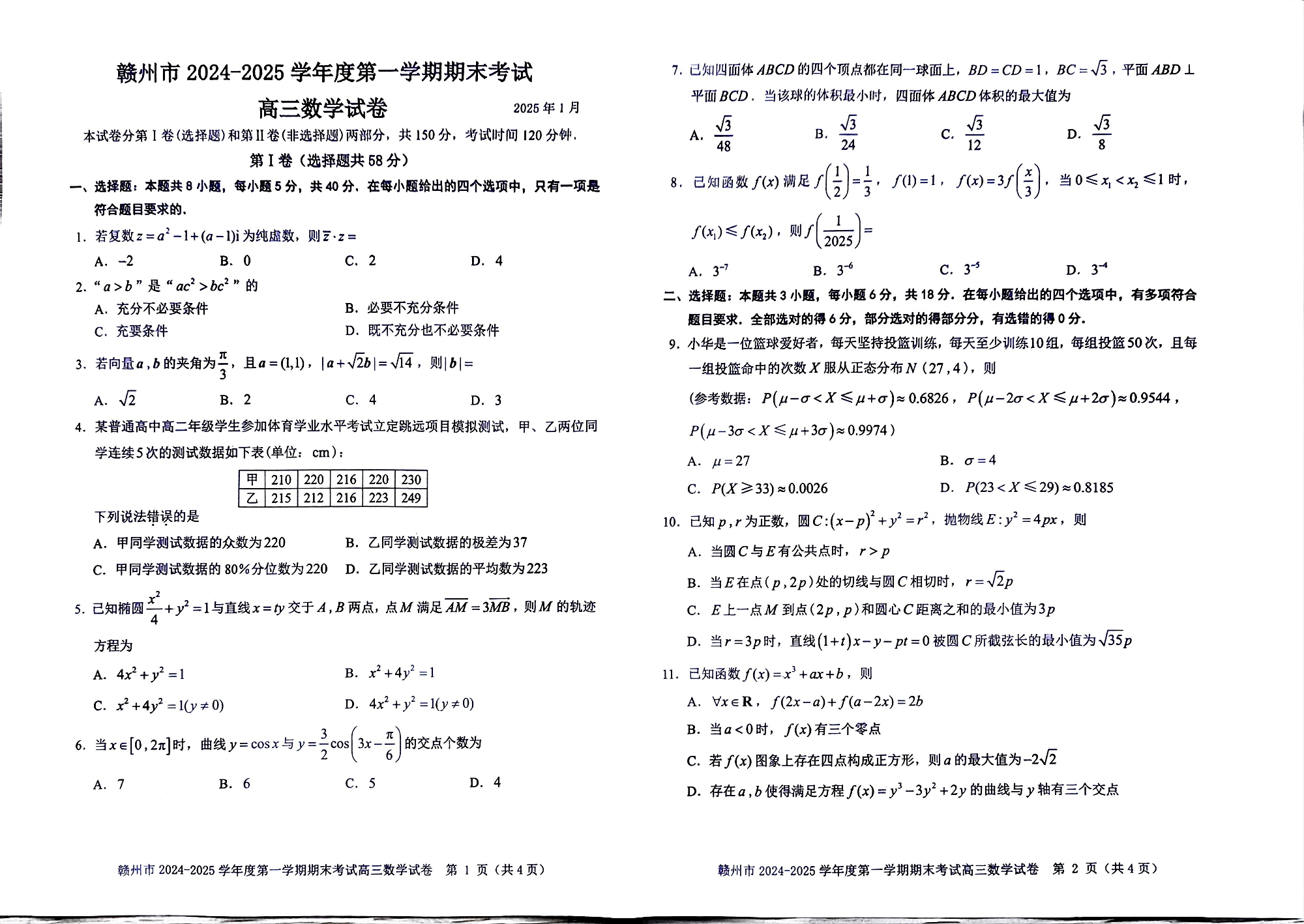 江西省赣州市2025届高三上学期1月期末考试 数学.pdf