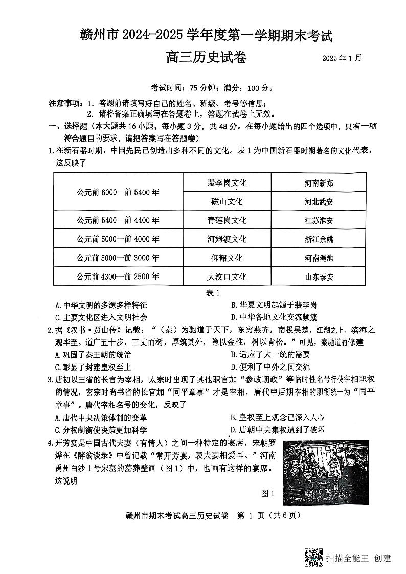 江西省赣州市2025届高三上学期1月期末考试 历史.pdf