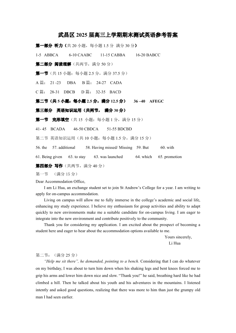 武昌区2025届高三年级上学期期末质量检测 英语答案.pdf