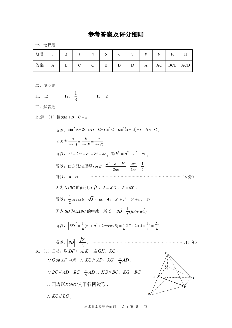 武昌区2025届高三年级上学期期末质量检测 数学答案.pdf