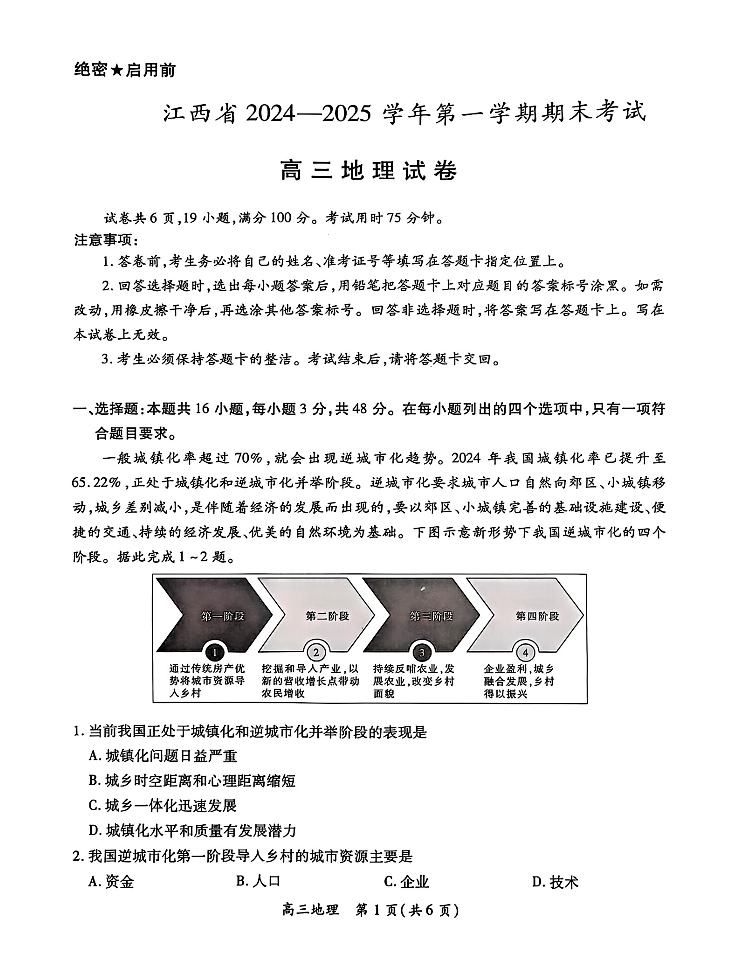江西省稳派2024-2025学年第一学期期末考试 地理.pdf
