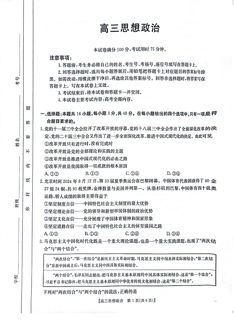 广东省深圳市宝安区2024-2025学年高三上学期1月期末考试政治试题.pdf