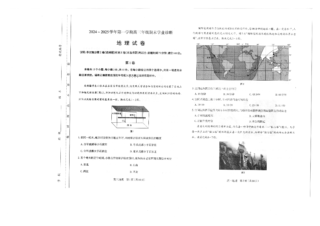 山西太原2024-2025学年高三期末学业诊断地理.pdf