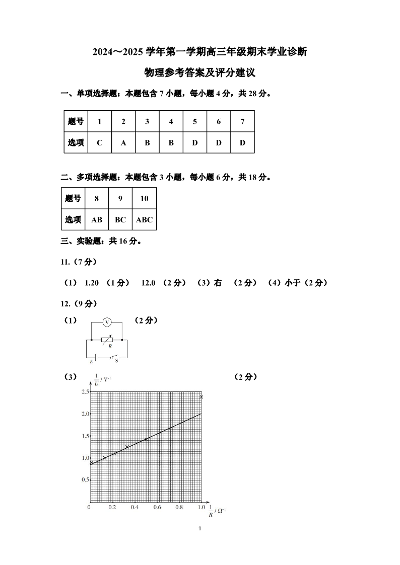 山西太原2024-2025学年高三期末学业诊断物理答案.pdf
