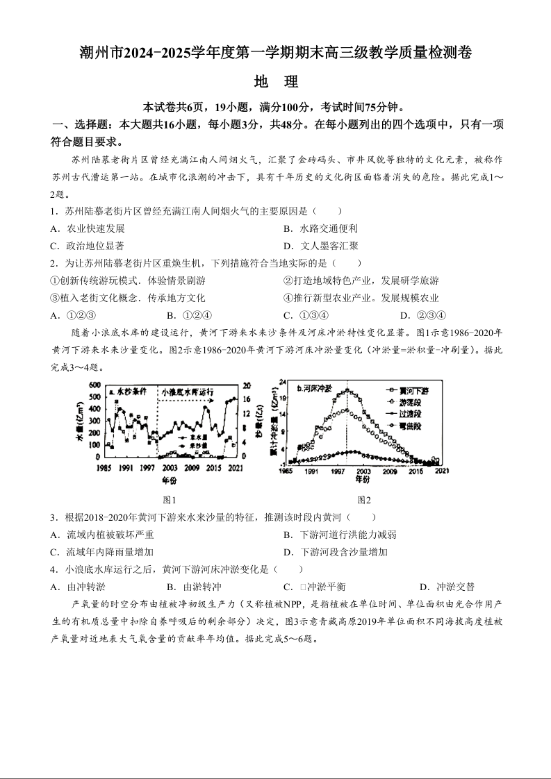 广东省潮州市2025届高三上学期期末教学质量检测 地理.docx