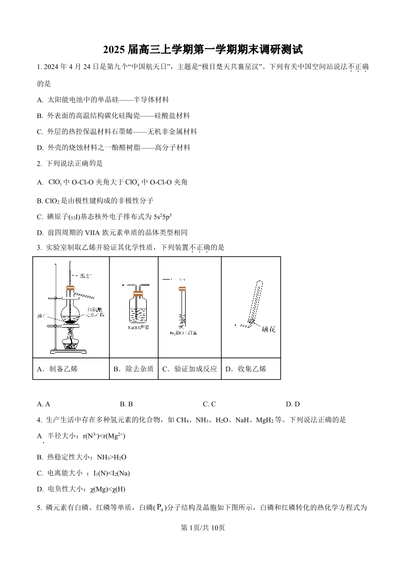 江苏省省扬州市2024-2025学年高三(上)学期期末检测 化学.pdf