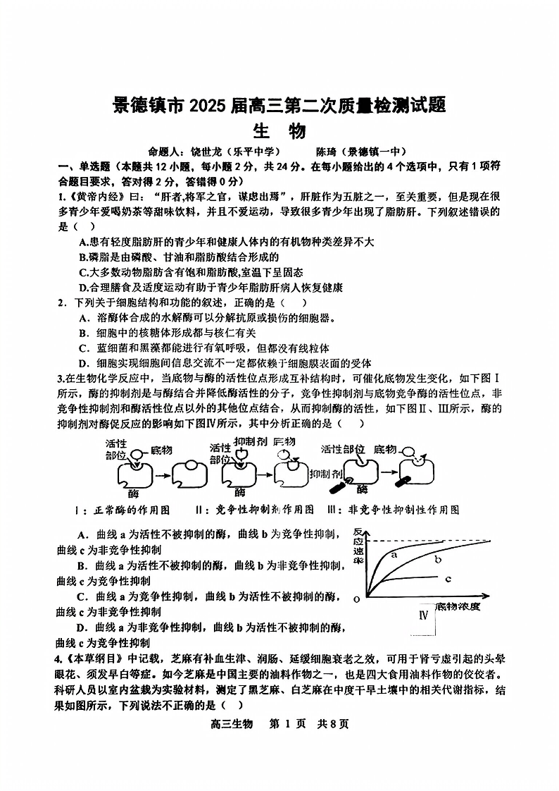 景德镇市2025届高三第二次质量检测(景德镇二检)生物.pdf