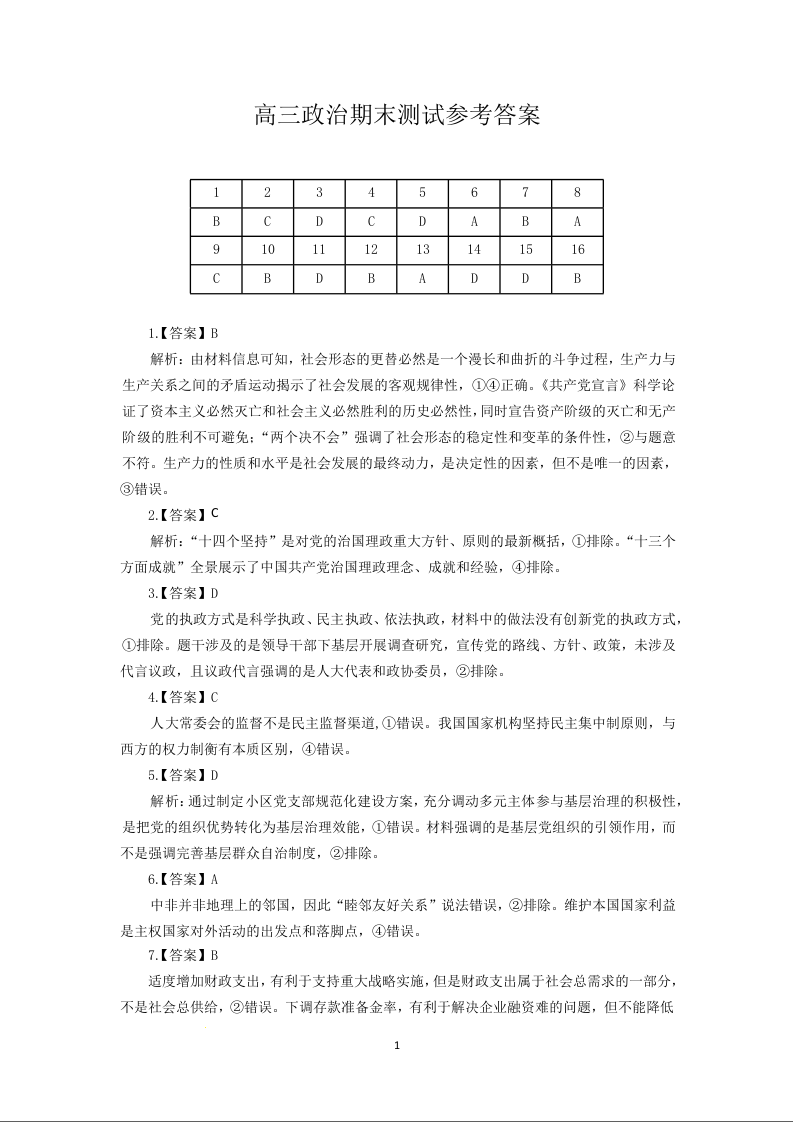山西省吕梁市2024-2025学年高三上学期期末考试 政治答案.docx