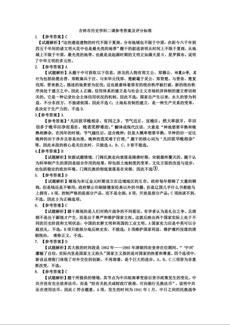 吉林省普通中学2025届高三上学期第二次调研测试 历史答案.docx