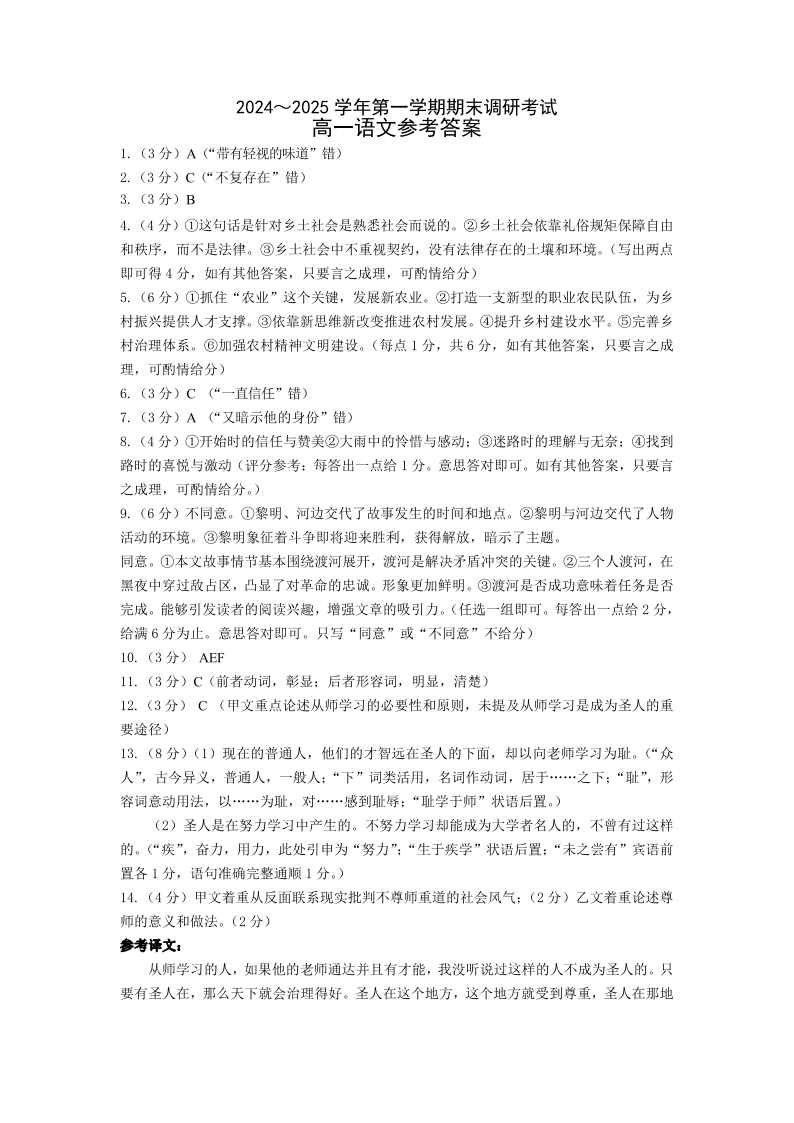 【语文+答案】25年1月连云港高一期末考卷.pdf