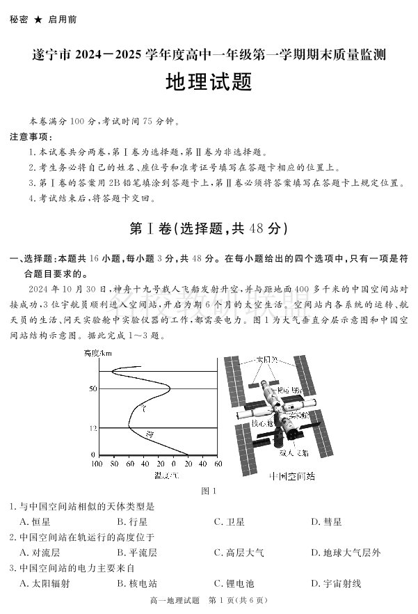 四川省自贡市、遂宁市、广安市等2024-2025学年高一上学期期末考试 地理.pdf