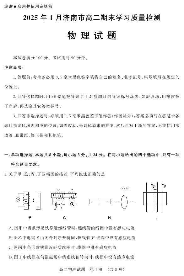 2025年1月济南市高二期末学习质量检测 物理.pdf