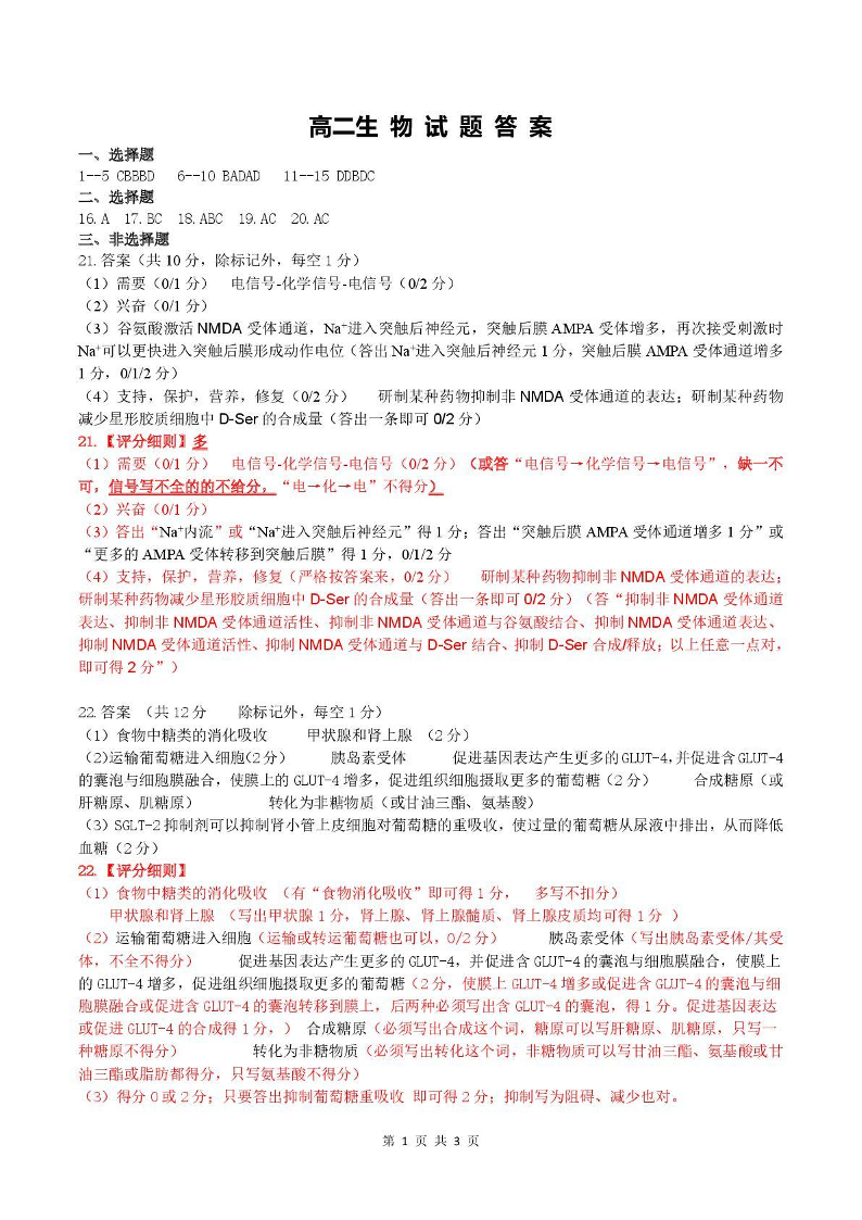 2025年1月济南市高二期末学习质量检测 生物答案.pdf