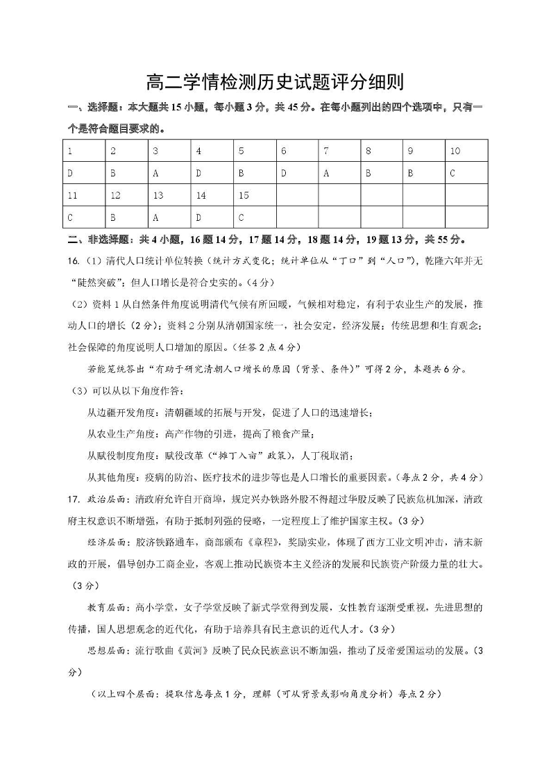 2025年1月济南市高二期末学习质量检测 历史答案.pdf