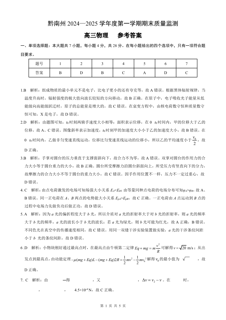 黔南州2024-2025学年度第一学期期末质量监测 物理答案.pdf